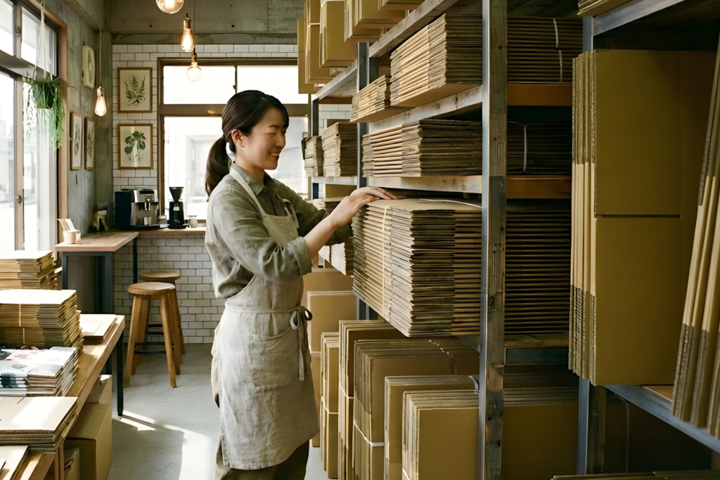 店頭で実際のサイズや強度を確認できます。失敗しないダンボール選びを。